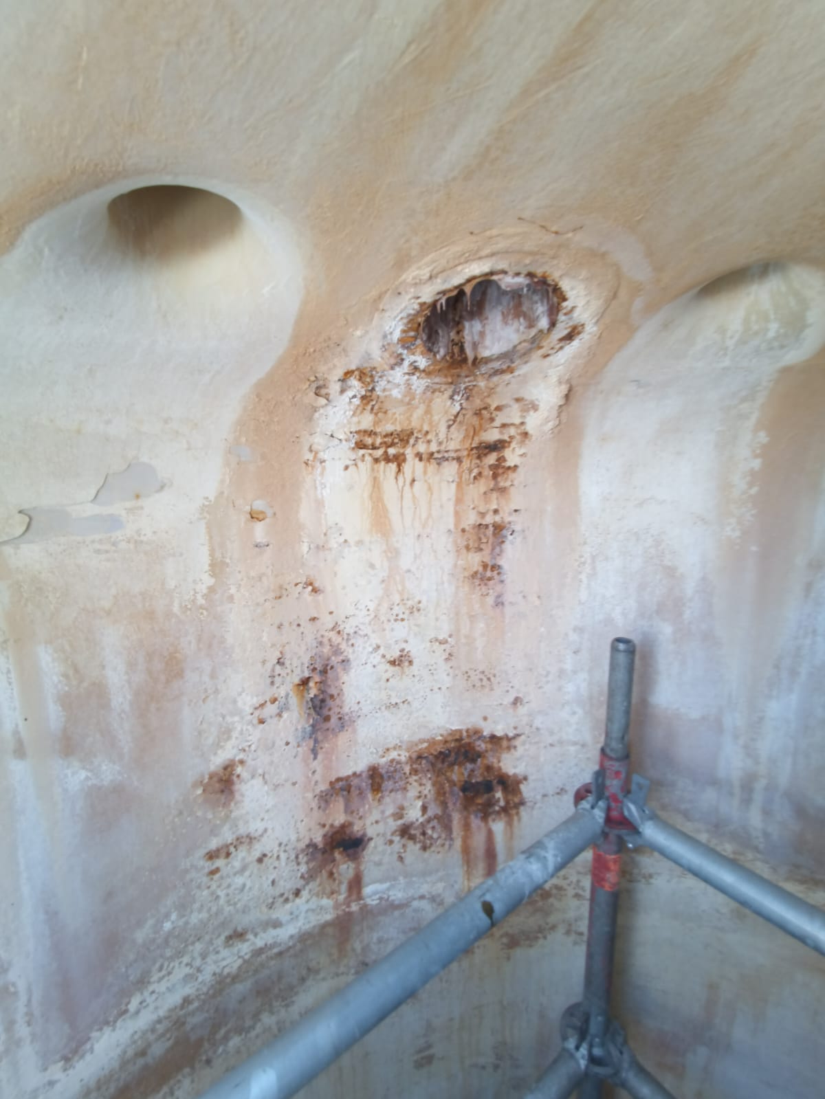 Condizione originale del reattore con corrosione attiva e degrado superficiale prima dell’intervento di ricostruzione Belzona.