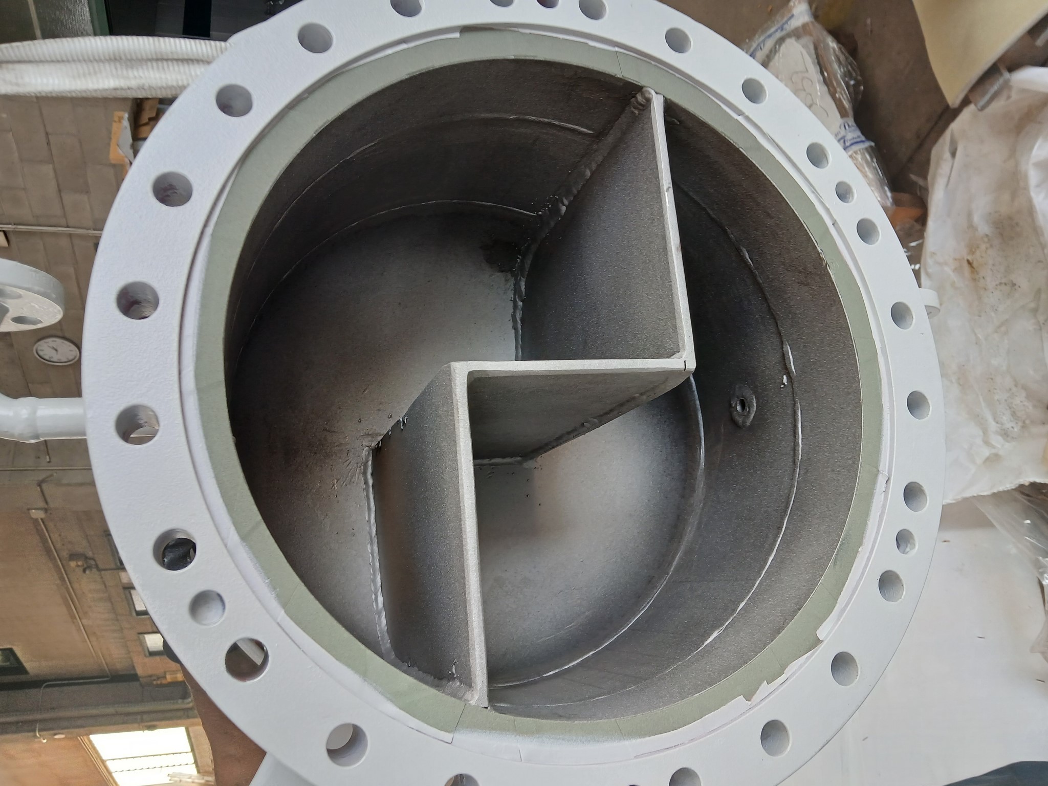 Interno rivestito con Belzona 1341, finitura liscia e protettiva contro corrosione ed erosione.